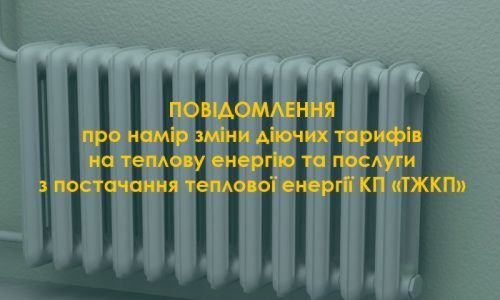 ПОВІДОМЛЕННЯ про намір зміни діючих тарифів на теплову енергію та послуги з постачання теплової енергії КП «ТЖКП»